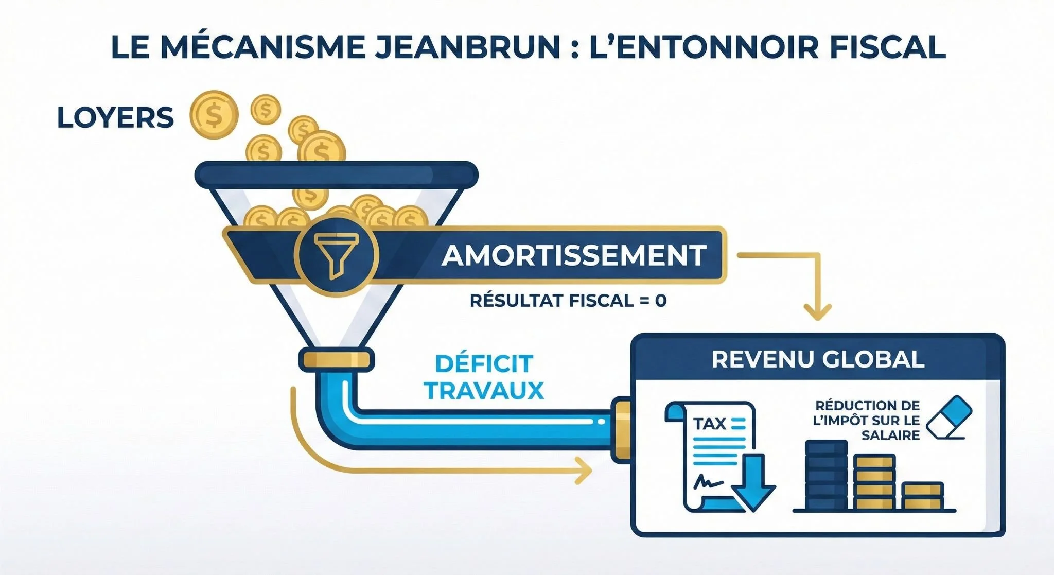 Si vous êtes fortement imposé (TMI à 30%, 41% ou 45%), le Statut du Bailleur Privé est une arme redoutable grâce à l'imputation du déficit sur votre revenu global. Le principe est simple : plus vous payez d'impôts, plus l'État finance vos travaux.
