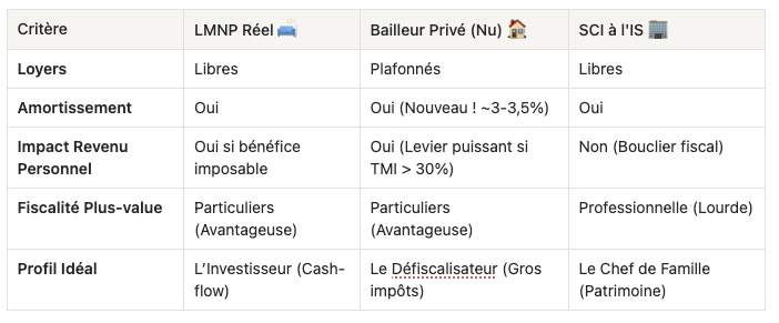Le match de 2026 : LMNP vs SCI à l’IS vs Bailleur Privé